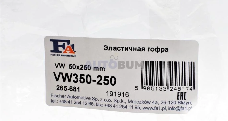 Гофра глушника Fischer Automotive One (FA1) VW350-250