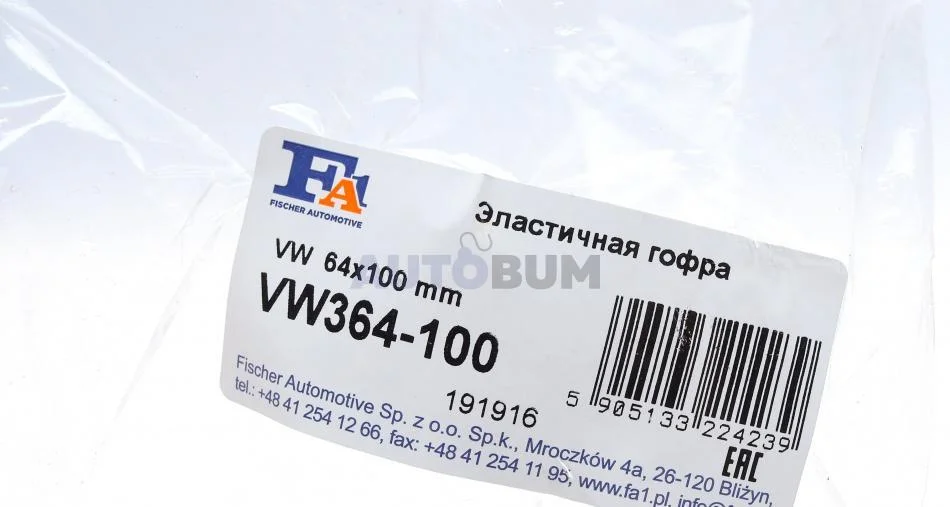 Гофротруба вихлопної системи Fischer Automotive One (FA1) VW364-100