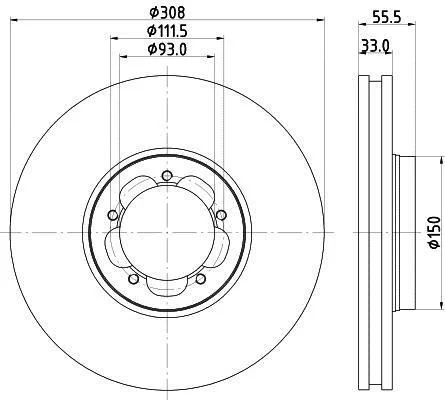 Гальмівний диск перед.TOURNEO CUSTOM/TRANSIT 2.2 12-18 (RWD) (308х33) (PRO) HELLA 8DD 355 123-131