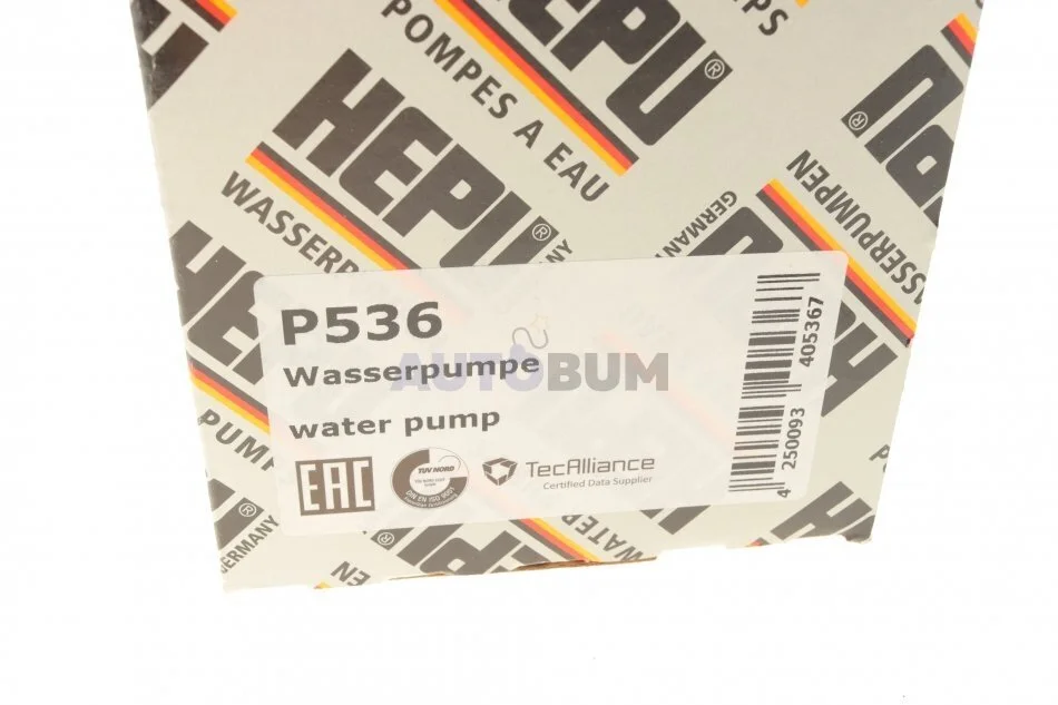 Насос охолоджуючої рідини, з ущільненням AUDI 100 C4, A6 C4 VW LT 28-35 I, LT 28-35 II, LT 28-46 II, LT 40-55 I, TRANSPORTER T4 2.4D/2.5/2.5D 01.79-07.06 HEPU P536