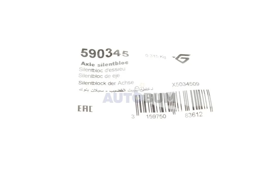 Сайлентблок балки (задньої) Citroen C3 Picasso 09-/Peugeot 207 06-15 HUTCHINSON 590345
