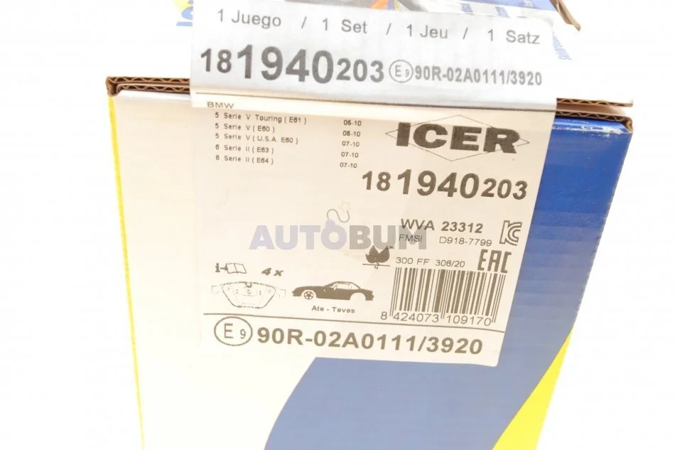 Комплект гальмівних колодок (дискових) ICER 181940-203