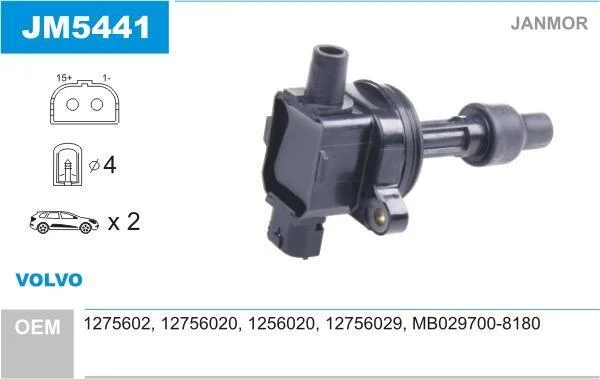 Котушка запалювання VOLVO C30, S40 I, V40, V50 1.6-2.0 07.95-12.12 Janmor JM5441