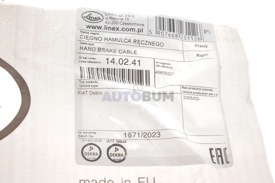 Трос ручного гальма LINEX 14.02.41