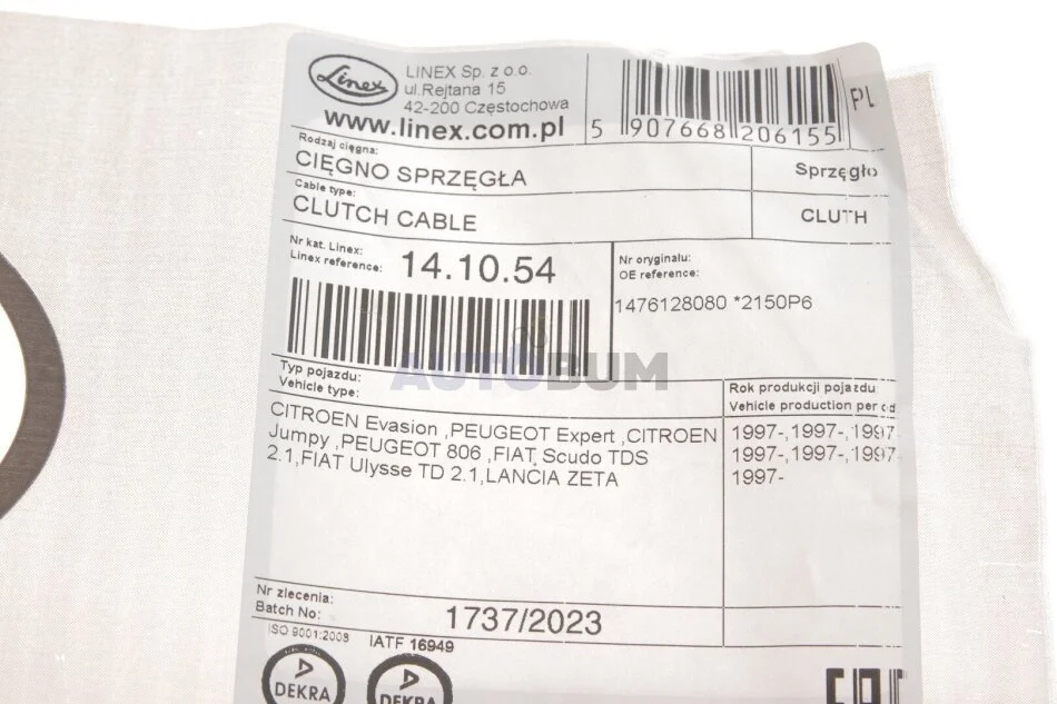 - LINEX 14.10.54 підходить до марок/моделей авто: