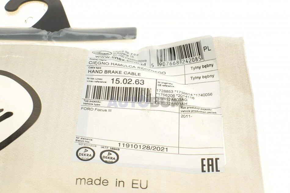 - LINEX 15.02.63 підходить до марок/моделей авто: