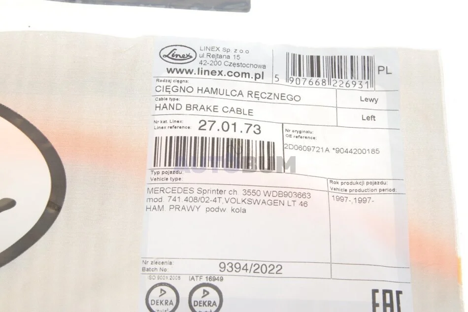 Трос ручного гальма LINEX 27.01.73