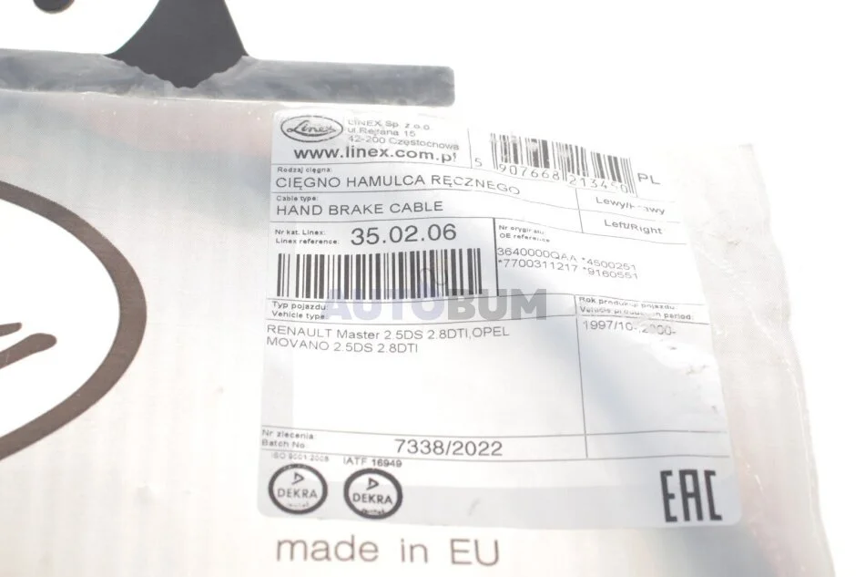 Трос ручного гальма LINEX 35.02.06