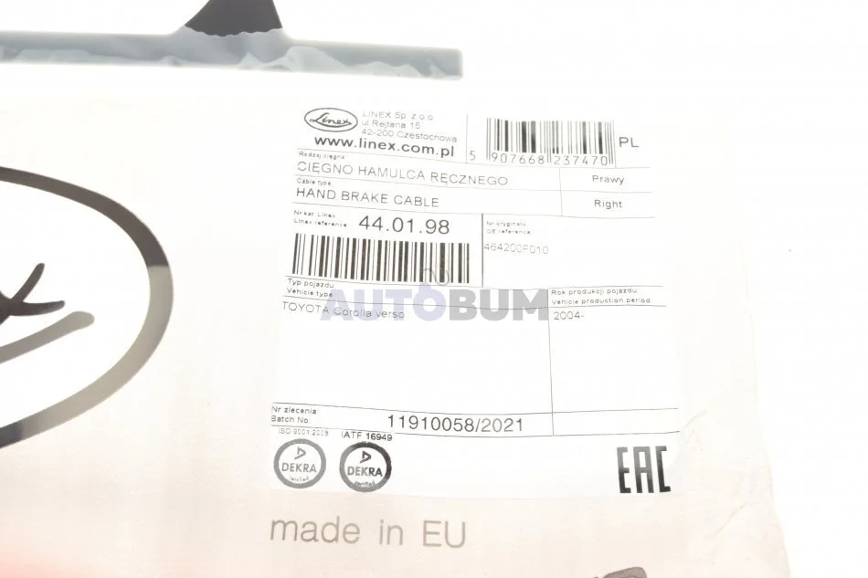Трос ручного гальма LINEX 44.01.98