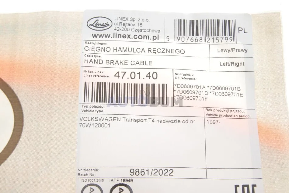 - LINEX 47.01.40 підходить до марок/моделей авто: