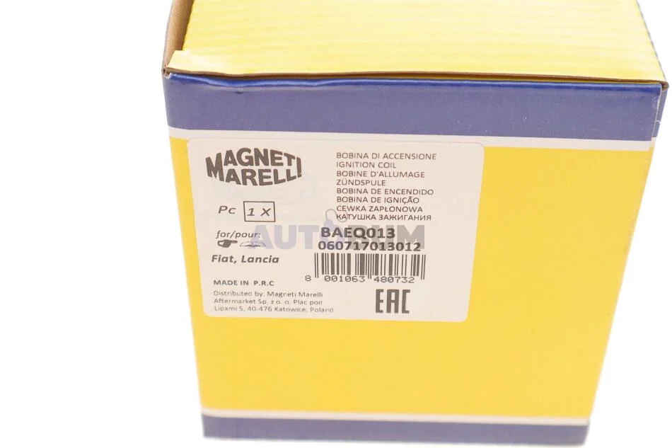 Котушка запалювання FIAT: CROMA 1,6/ 2,0 CHT/ 2,0 IE FIORINO 1,4/ 1,5/ 1,6 REGATA 70/ 75/ 85 RITMO 60/ 75/ 85/ 105/ 1 [] MAGNETI MARELLI 060717013012