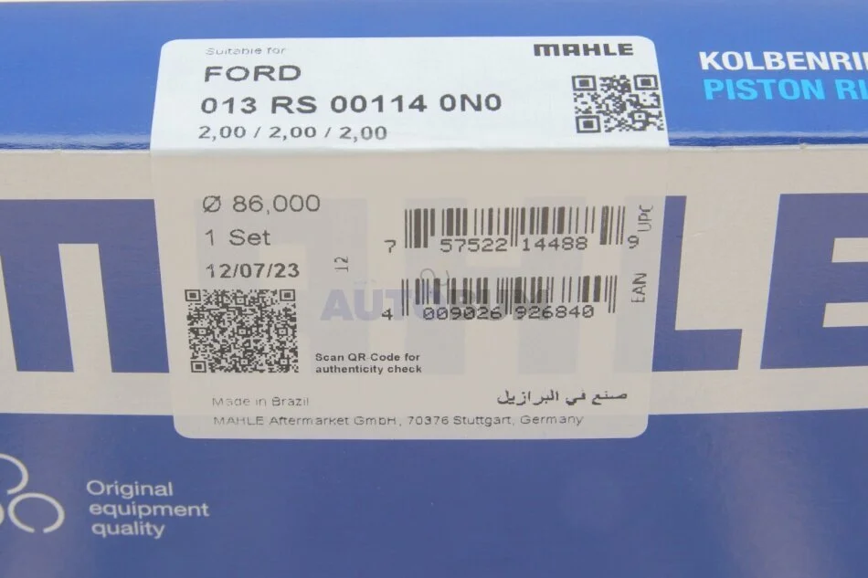 Кільця поршневі MAHLE / KNECHT 013 RS 00114 0N0