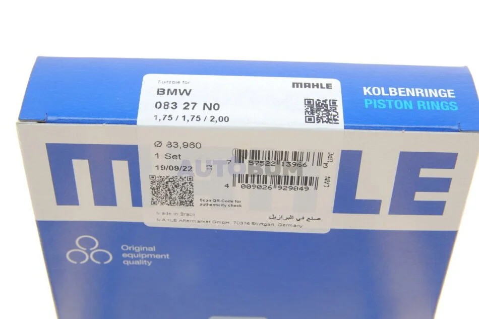 Кільця поршневі MAHLE / KNECHT 083 27 N0