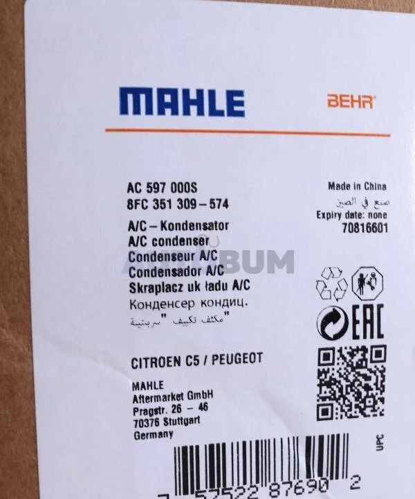 Конденсер кондиціонера MAHLE / KNECHT AC 597 000S