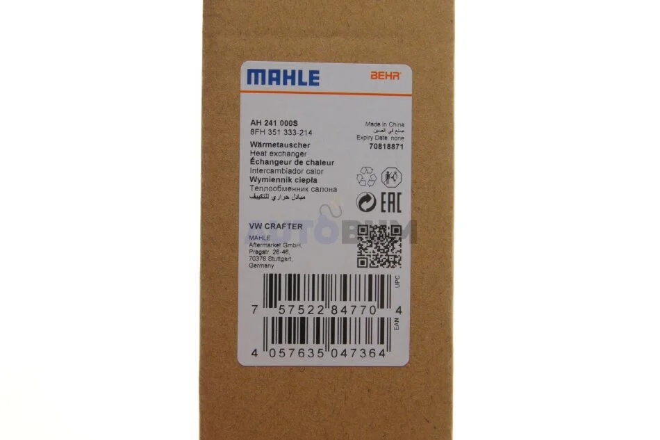 Радіатор пічки MAHLE / KNECHT AH 241 000S