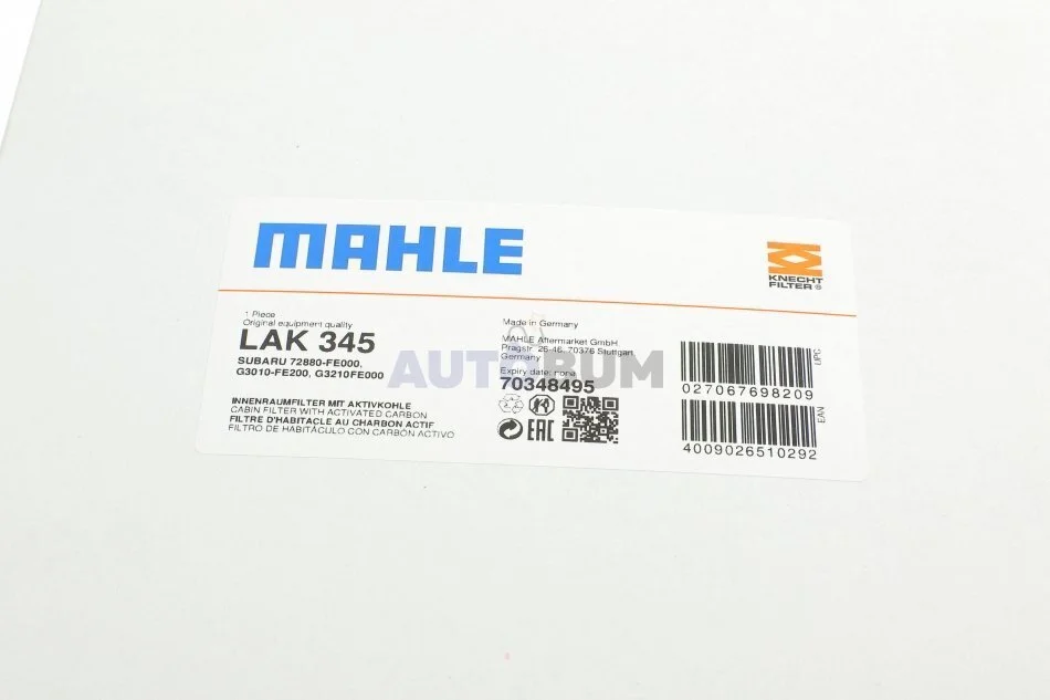 - MAHLE / KNECHT LAK 345 підходить до марок/моделей авто: