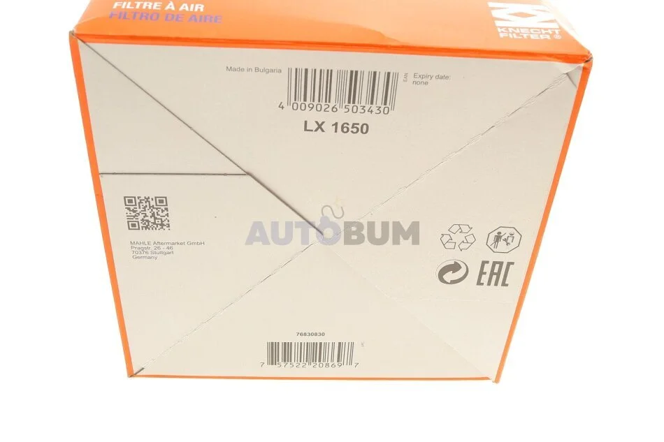 Фільтр повітряний MAHLE / KNECHT LX 1650