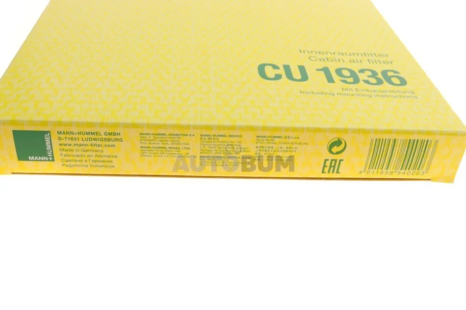 - MANN CU 1936 підходить до марок/моделей авто: