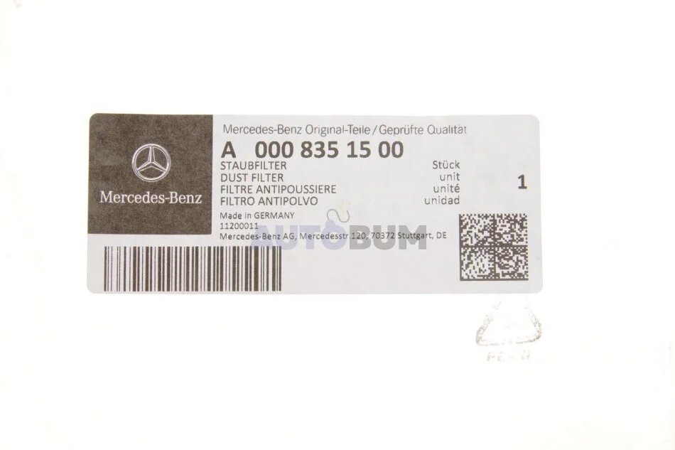 Фільтр повітряний салону MERCEDES-BENZ 0008351500