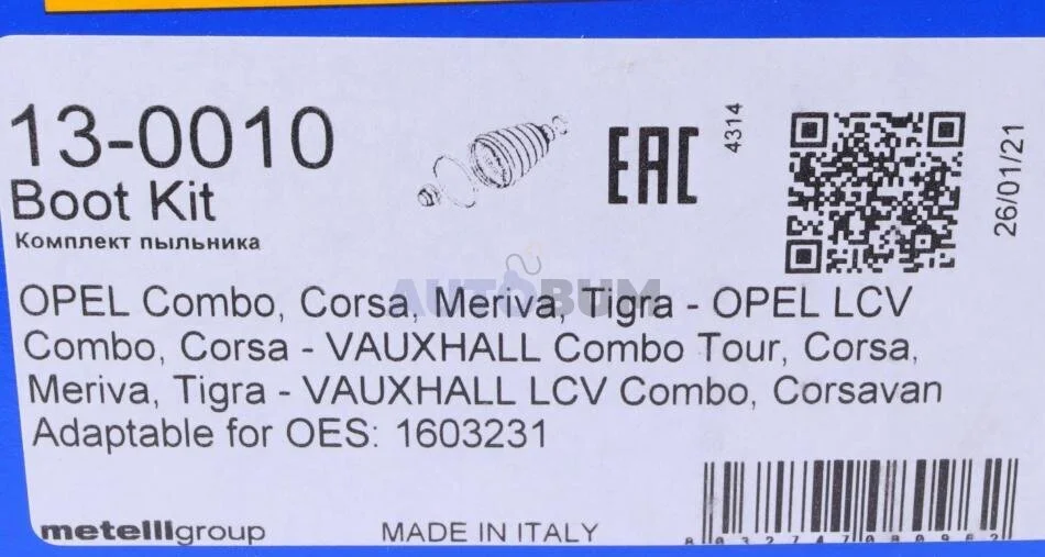 - Metelli 13-0010 підходить до марок/моделей авто: