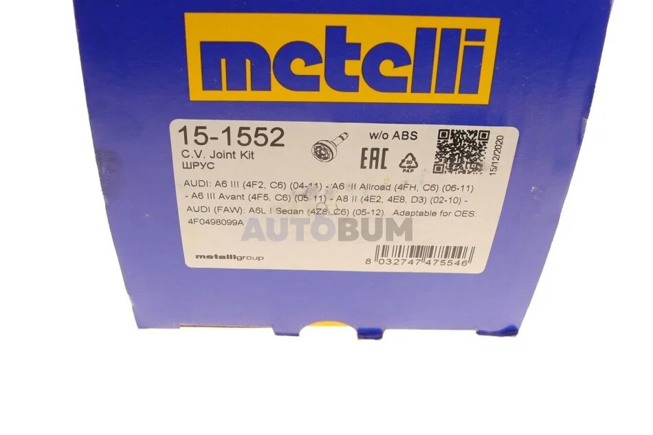 - Metelli 15-1552 підходить до марок/моделей авто: