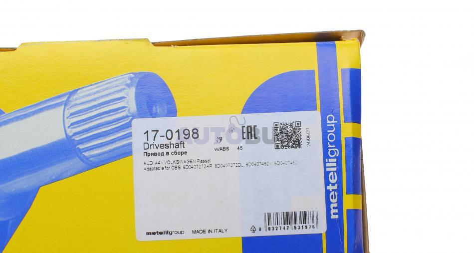 - Metelli 17-0198 підходить до марок/моделей авто:
