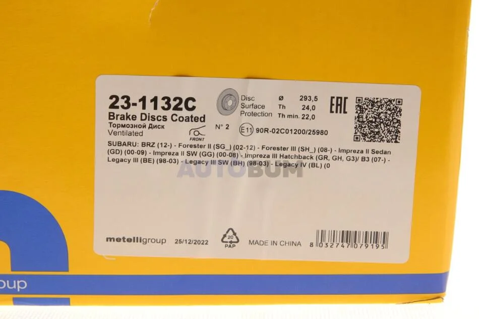 Виконує норми ЄЕК: ECE-R90