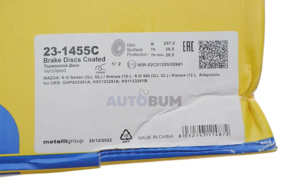 Перевірочне значення: ECE R90 APPROVED