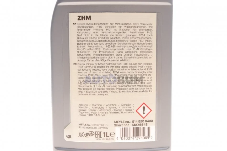 Рідина для рульового механізму з підсилювачем MEYLE 014 020 6400