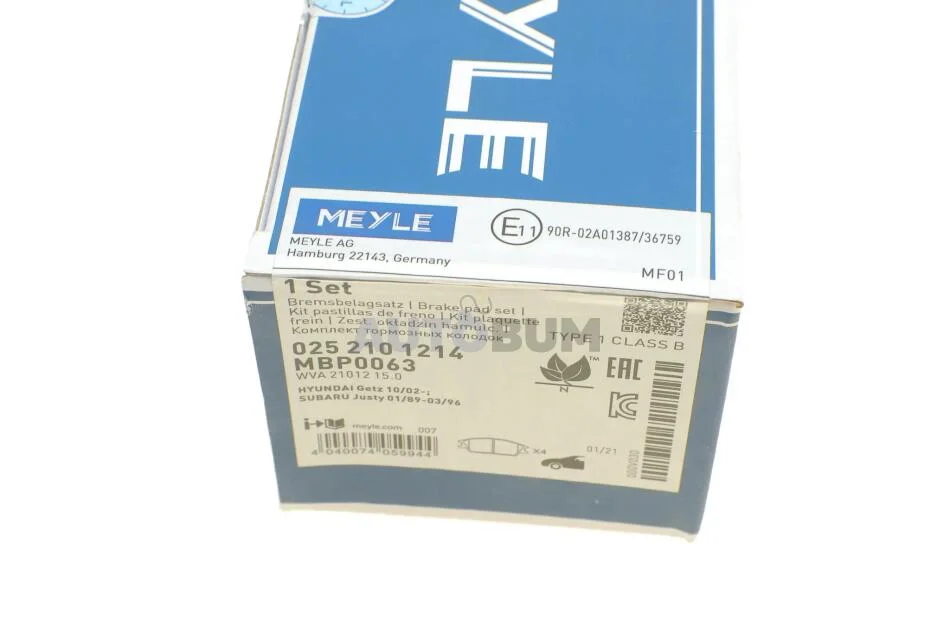 Комплект гальмівних колодок MEYLE 025 210 1214