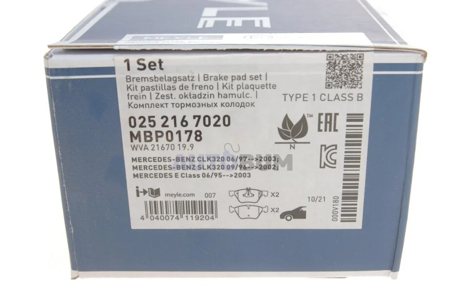 Комплект гальмівних колодок MEYLE 025 216 7020