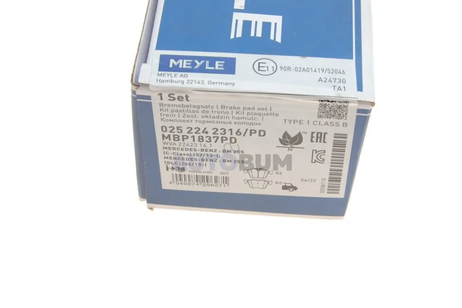 Комплект гальмівних колодок MEYLE 025 224 2316/PD