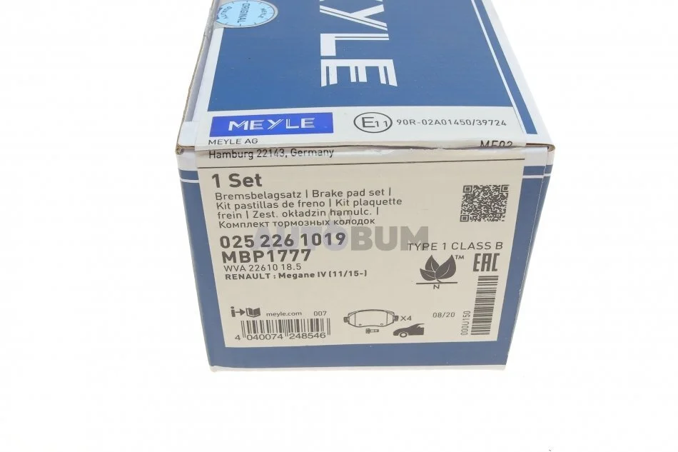 Комплект гальмівних колодок MEYLE 025 226 1019
