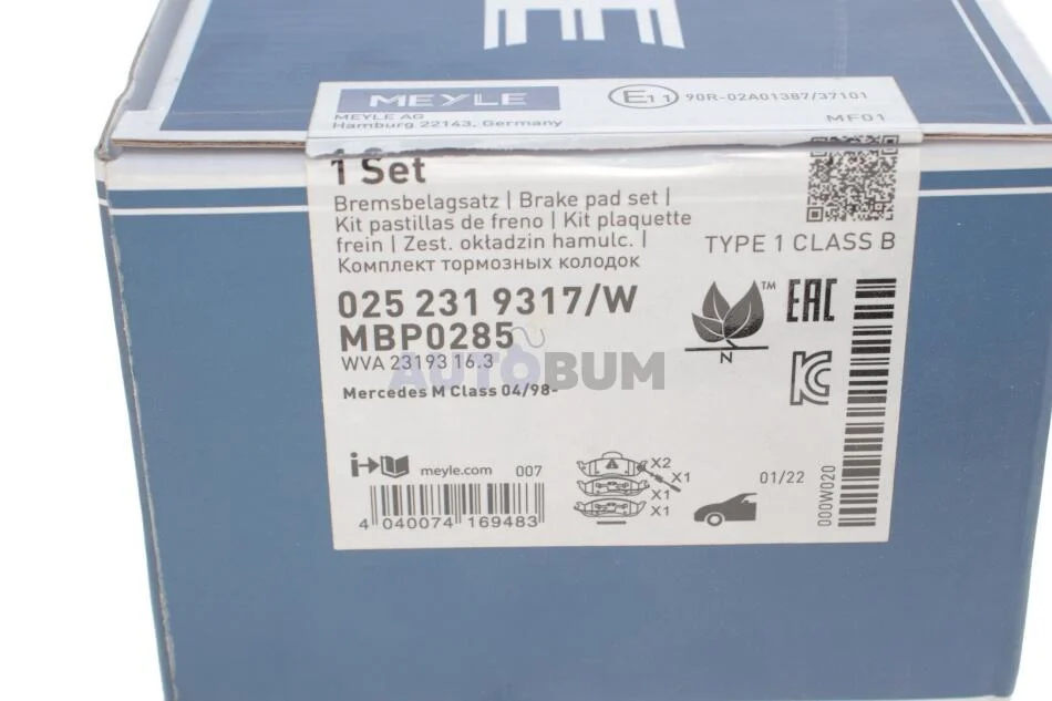 Колодки гальмівні, передні (під датчик) MB ML(W163) 98-05 MEYLE 025 231 9317/W