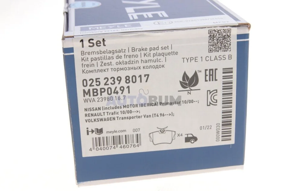 Комплект гальмівних колодок MEYLE 025 239 8017