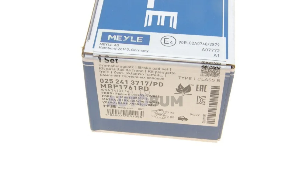 Комплект гальмівних колодок MEYLE 025 241 3717/PD