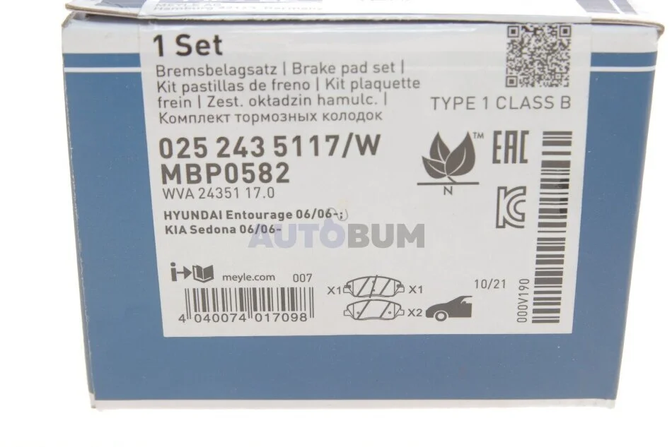 Комплект гальмівних колодок MEYLE 025 243 5117/W