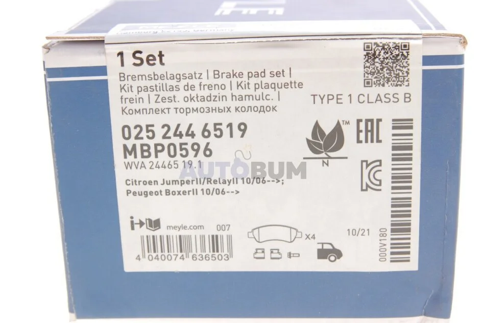 Комплект гальмівних колодок MEYLE 025 244 6519