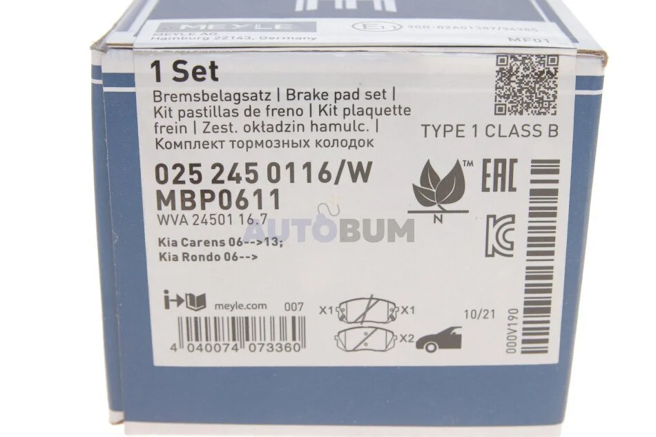 Комплект гальмівних колодок MEYLE 025 245 0116/W