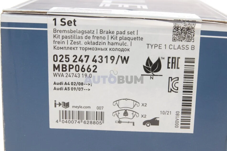 Комплект гальмівних колодок MEYLE 025 247 4319/W
