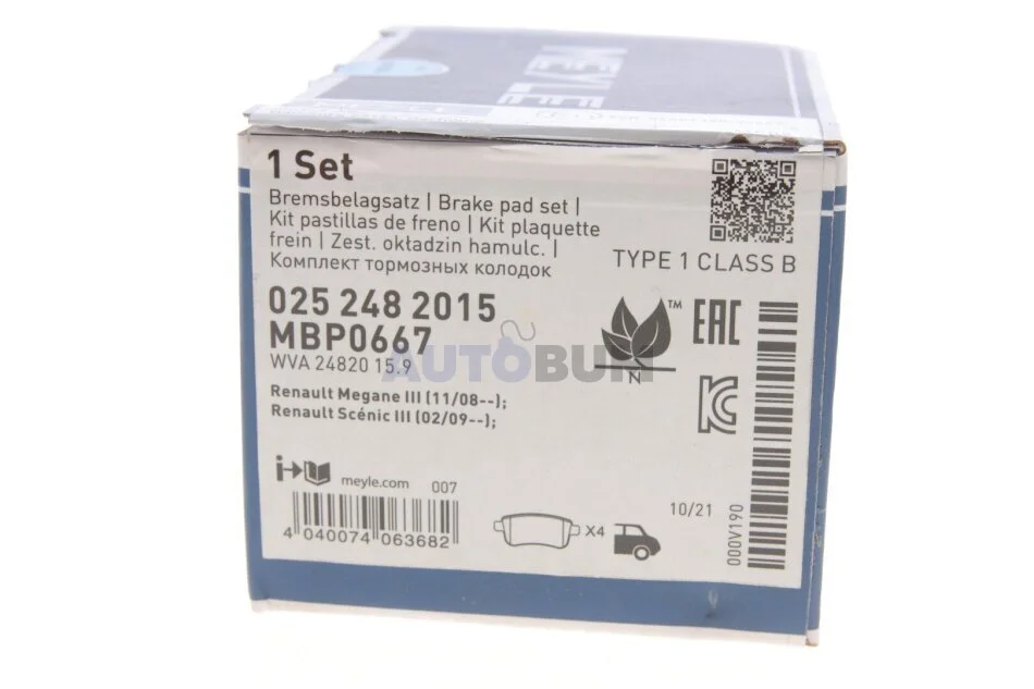 Комплект гальмівних колодок MEYLE 025 248 2015