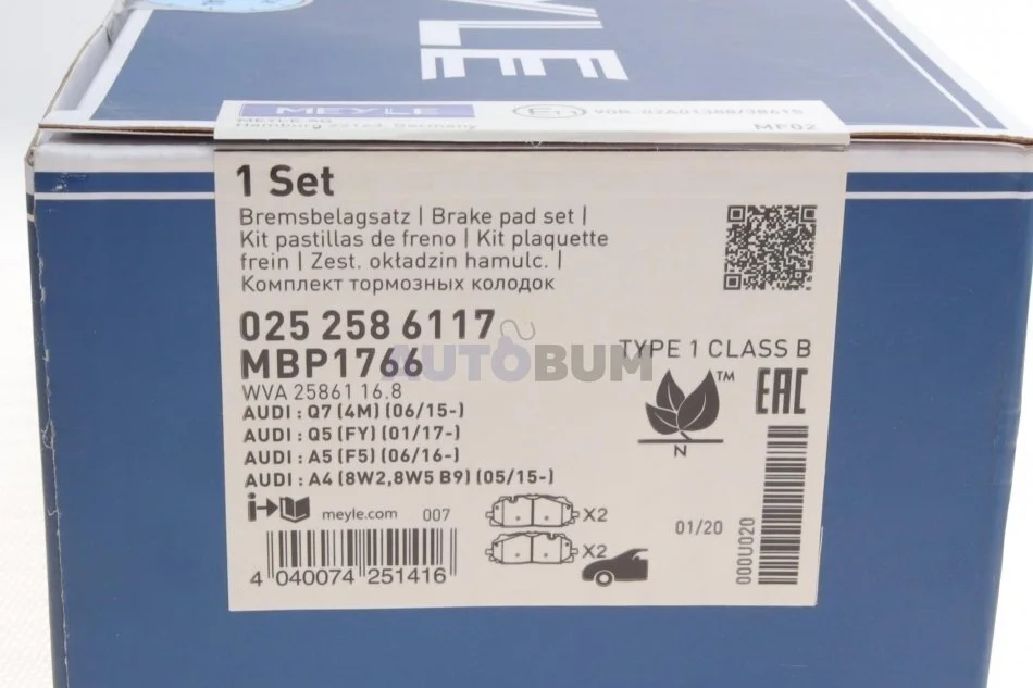 Комплект гальмівних колодок MEYLE 025 258 6117