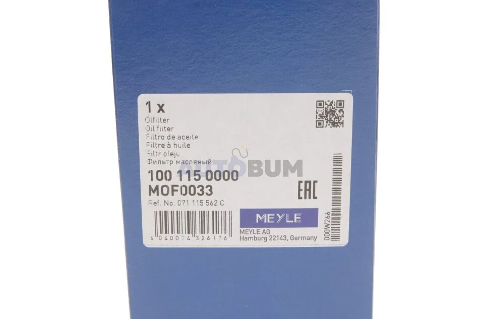 Фільтр масляний MEYLE 100 115 0000