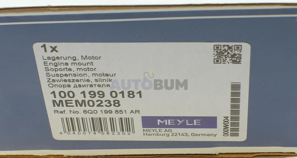 Подушка двигуна MEYLE 100 199 0181