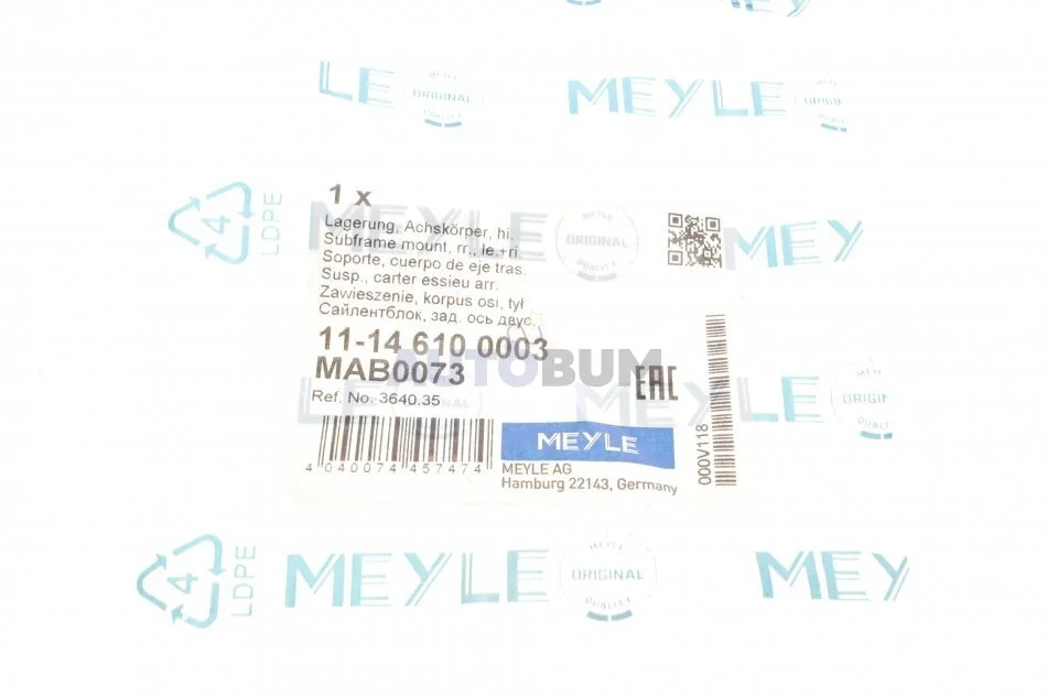 Сайлентблок балки підвіски MEYLE 11-14 610 0003