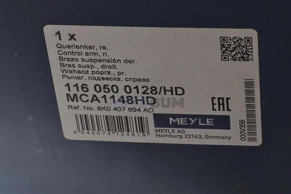 Важіль підвіски передній Прав нижн/поперечний із задньої частини (з гумовою прокладкою) AUDI A4 ALLROAD B8, A4 B8, A5, Q5 PORSCHE MACAN 1.8-4.2 06.07- MEYLE 116 050 0128/HD