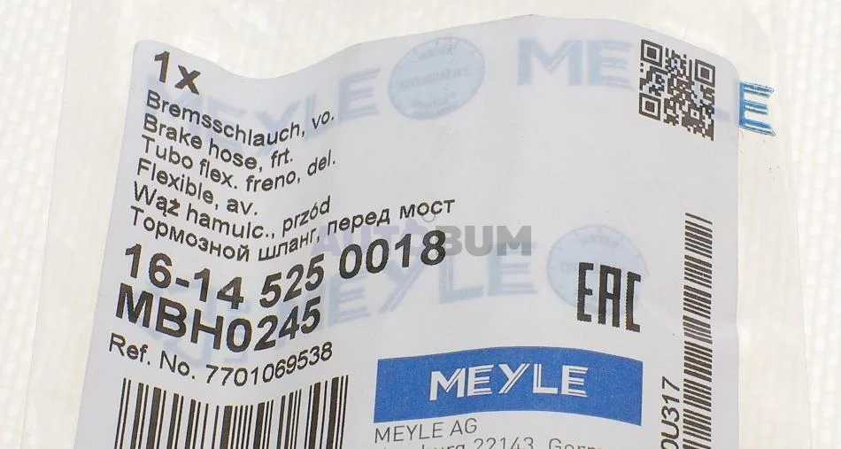 Шланг гальмівний MEYLE 16-14 525 0018