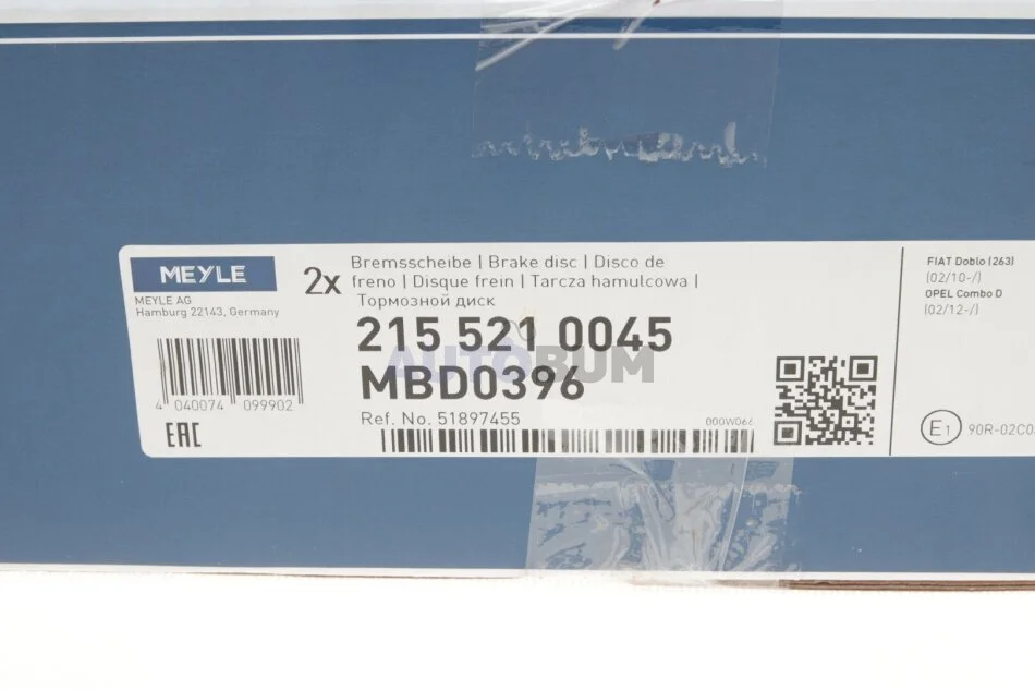 Диск гальмівний MEYLE 215 521 0045