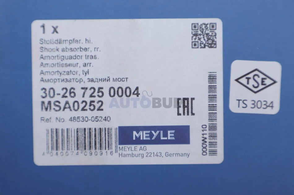 Амортизатор підв. TOYOTA задн. MEYLE 30-26 725 0004