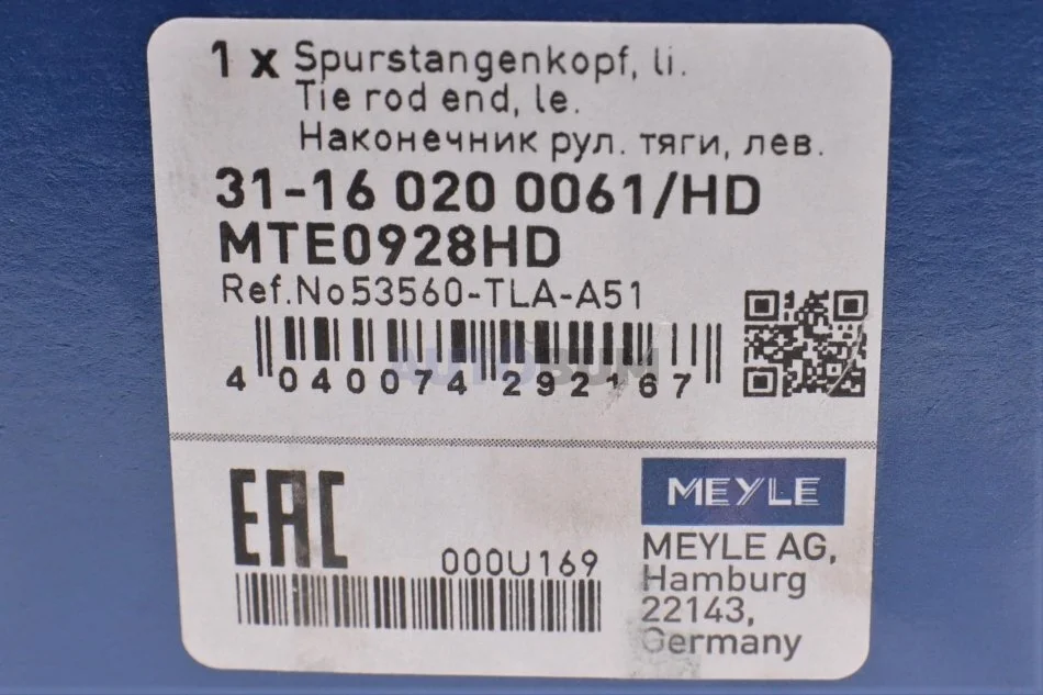Накінечник кермової тяги MEYLE 31-16 020 0061/HD